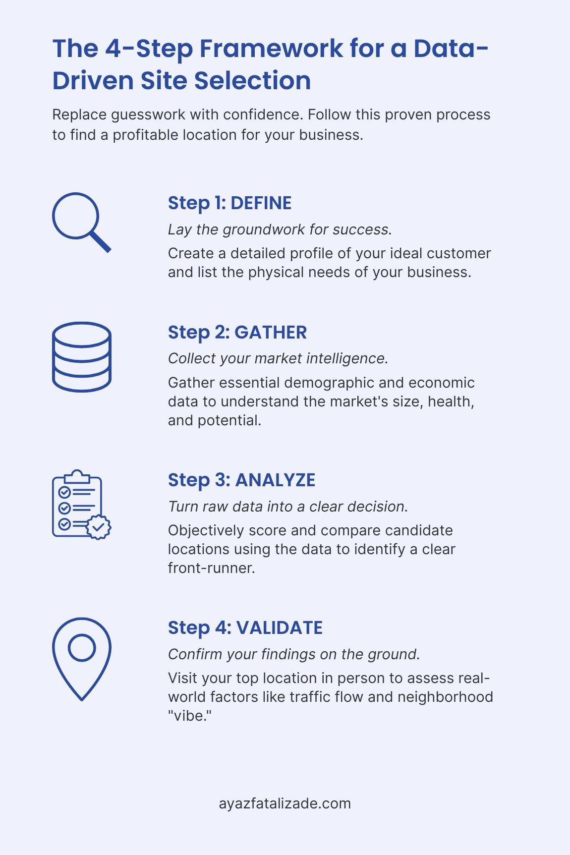Over the years, I’ve refined a clear, four-step framework that turns the complex task of site selection into a manageable process. It’s designed to build on itself, ensuring that each step informs the next.